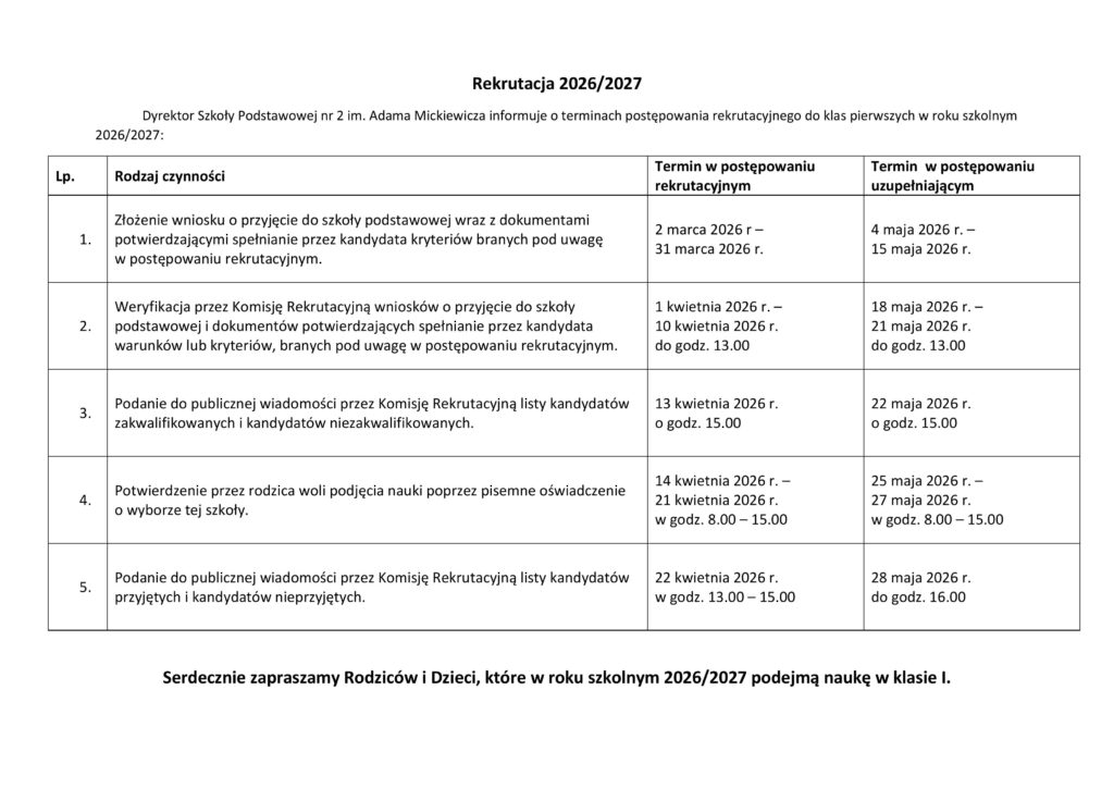 Rekrutacja do klas pierwszych Szkoły Podstawowej nr 2 im. Adama Mickiewicza w Łowiczu – dokumenty do pobrania
